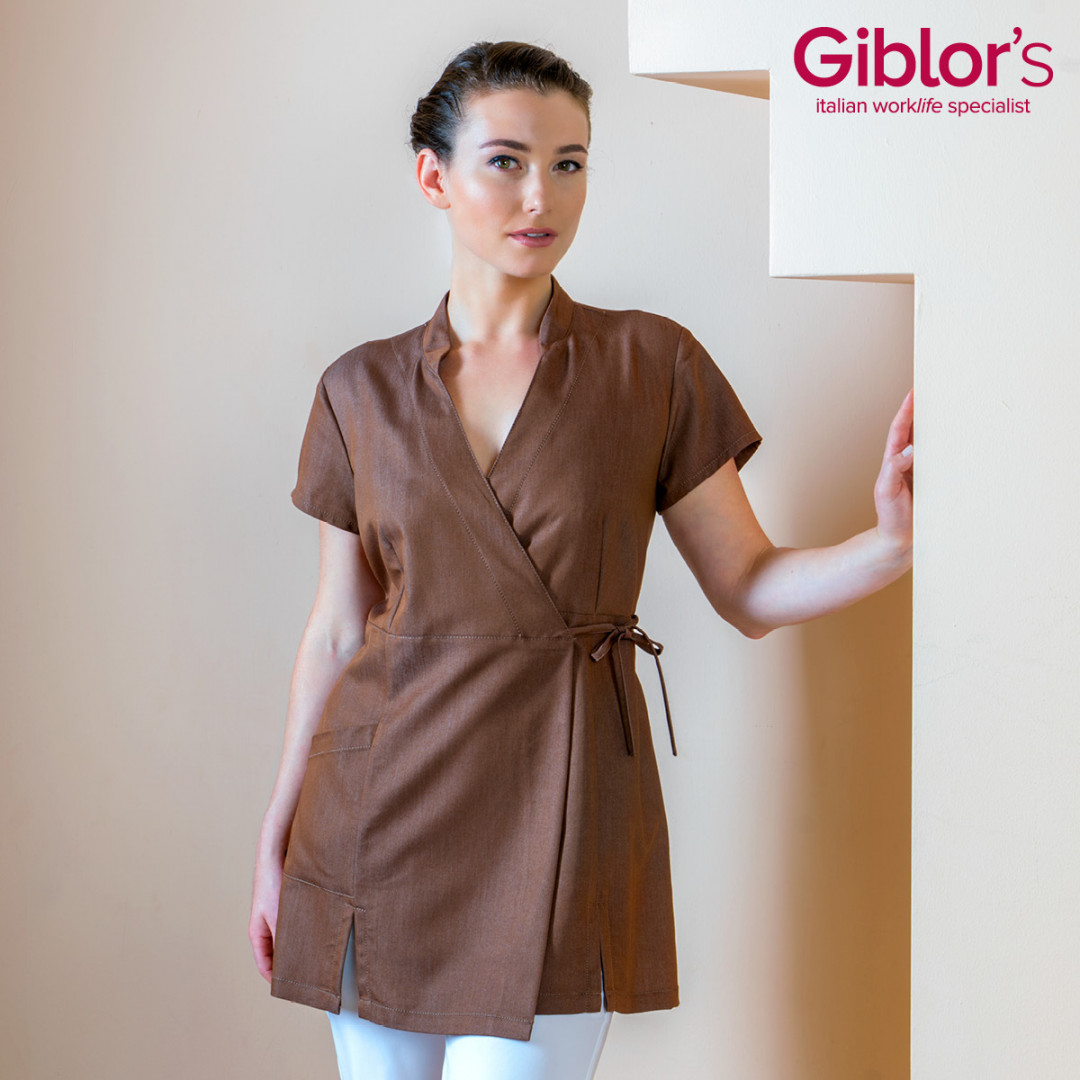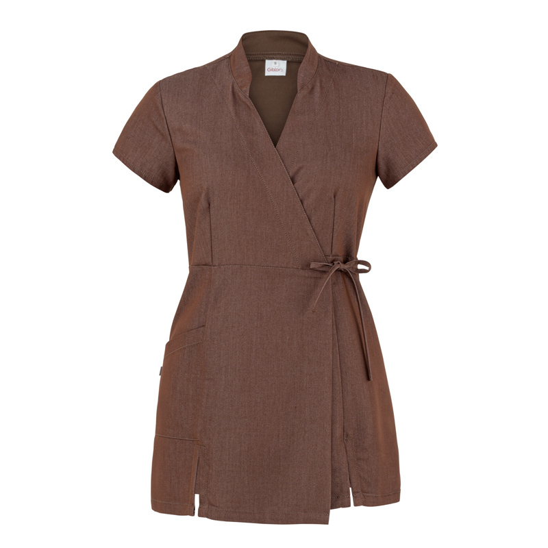 Il kimono Paola è uno dei nostri capi più trend nel mondo dell’estetica. Colletto alla coreana, incrocio con lacci da annodare in vita, manica corta e spacchi per facilitare il movimento. Le impunture di rifinitura sono in tono col capo e realizzate in un filato nobile dal titolo 30. Questa variante del kimono Paola è realizzata in jeans morbido, un poliviscosa elasticizzato di media grammatura, che non aderisce al corpo. Il tessuto risulta cadente e brillante e mostra un’eccellente durata nel tempo, oltre a resistere alle alte temperature di lavaggio.
